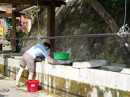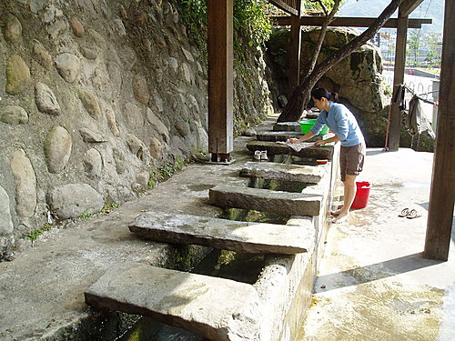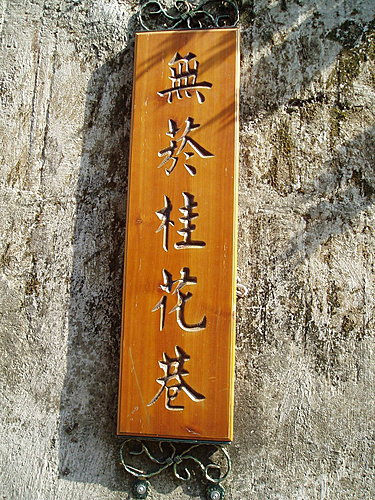 水汴頭 洗衫坑 : 就保留著早先的生活模式,很巧的剛好遇到一位當地人正在洗衣服,原本不太想打擾她,不過要深入了解一個地方的文化,最直接的方法就是找當地人聊天,因此法蘭琪也走過跟她聊了幾句,對於常常有觀光客來這拍照她們已經司空見慣了,不過對於她們而言這就是她們最平常不過的生活模式,數十載如一日。為了不想太像擾人的觀光客讓人討厭,我們禮貌性的跟她說聲謝謝之後就走進桂花巷。