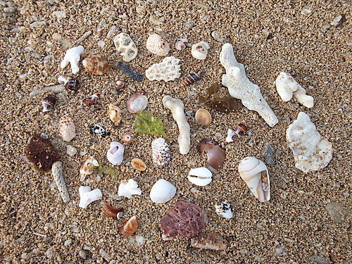 <行前同事請我從澎湖寄張明信片做紀念,挑了一張沙灘上佈滿貝殼的照片;