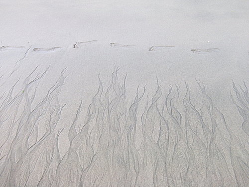 隨著海水退去時,在沙灘上留下一道一道的細痕