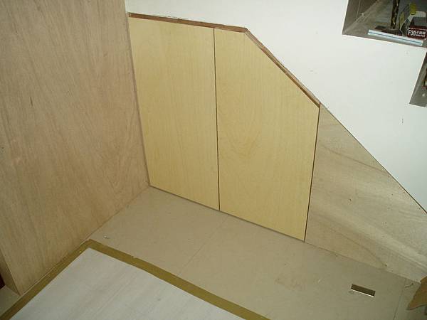 <樓梯下方的空間也充分利用,做成兩片門,開啟後門片比較不會佔空間>