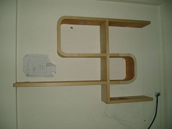 第一版的書房書架(上圖),師傅並沒有完全照我原先的設計圖來做,
