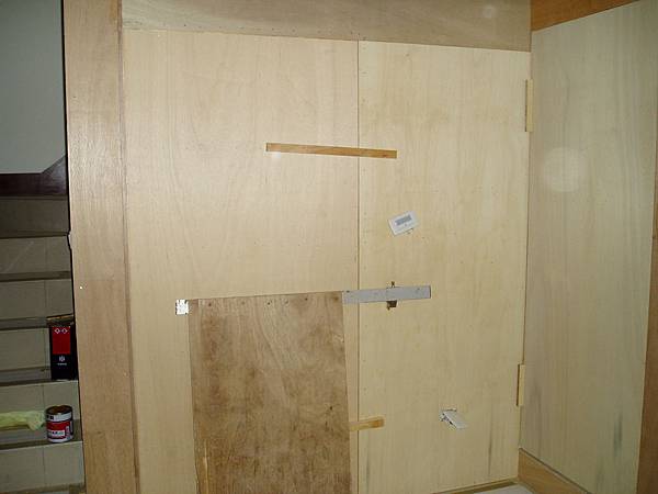 還有浴室+孝親房兩面轉折的牆面也都封起了木板