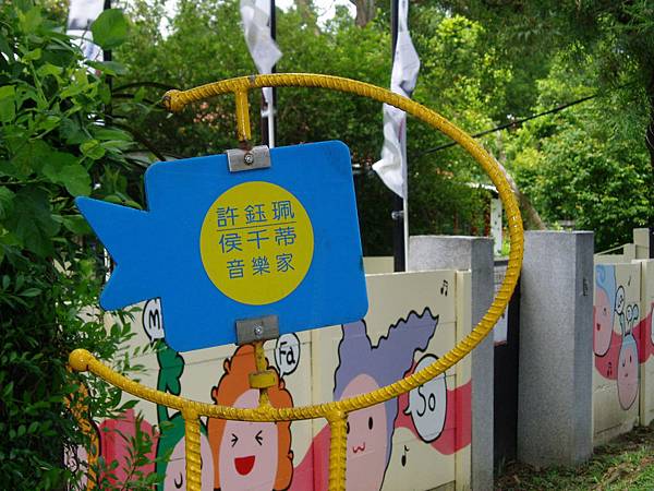沿路兩旁的樹上都可看到這樣的旗幟, 上面是今年駐村藝術家的簡介..說明那個藝術家住在幾號...