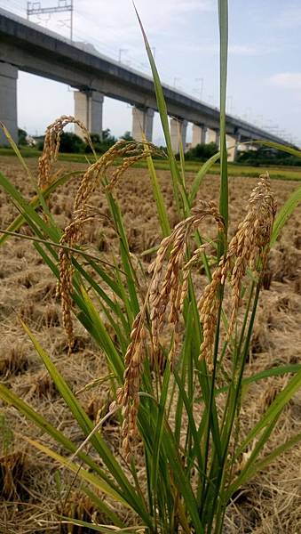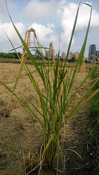 路邊的稻田已經有許多都收割了,路邊獨留一株未收割的稻穗,不知是否為刻意留下?