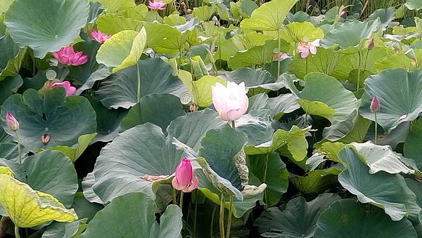 路旁的荷花池也開花了,吸引攝影愛好者捕捉風采,