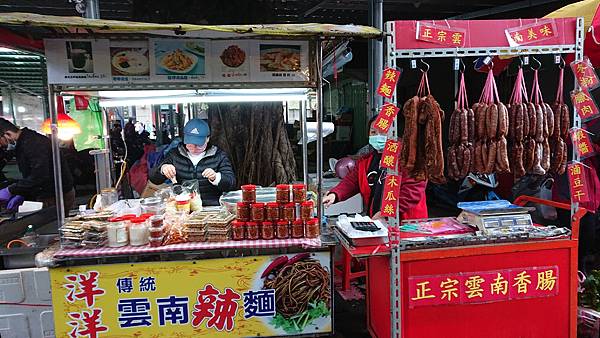 小小一個攤子(正宗雲南香腸),擠滿了豐富的庶民美食(辣麵、香腸、酒釀、木瓜絲、冬粉、臘肉、蝦醬、滷豆干)