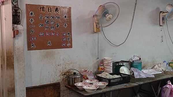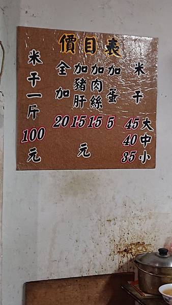 很單純的只賣米干(就分大碗、中碗、小碗),另外也只有蛋、肉絲、豬肝最基本的三樣可以加,非常親民的價格。