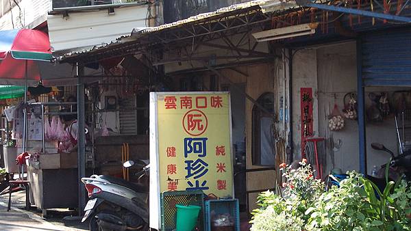 後記: (上圖:攝於2011/07/03)阿珍米干以前在門口是有招牌的,但或許是避免跟另一家店混淆,這間店沒有了招牌(只能從大門上看到舊的店名);