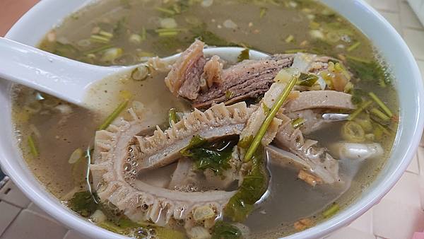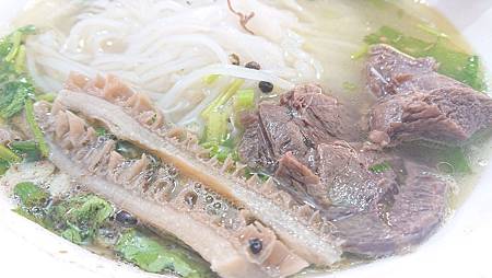 先前介紹的"米干",雖然各家湯頭略有不同,但大致上都是很有味道的。難得在市場內吃到清燉的牛肉湯頭。這一碗牛雜湯,包括了肉塊、肉片,以及牛肚三種牛肉口感。