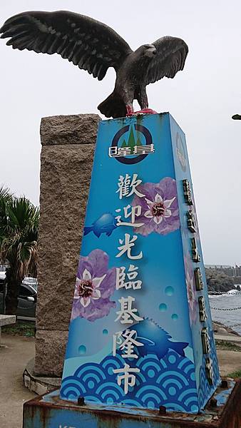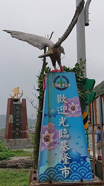 因為此處位於 基隆市 和 新北市(瑞芳),所以可看到代表基隆市的老鷹地標、以及新北市瑞芳區的礦工地標,都是代表當地特色的意象。