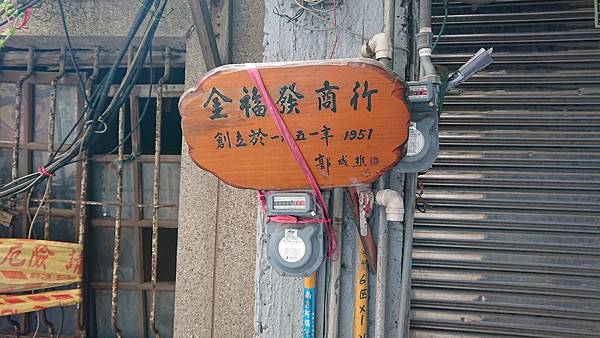 整條巷子前後大約不到一百公尺,沿路可發現三個標示牌: 金福發商行(1951年)、漪麗美髮屋(1952年)、錦興金香行(創立於日據時代);