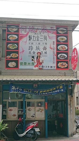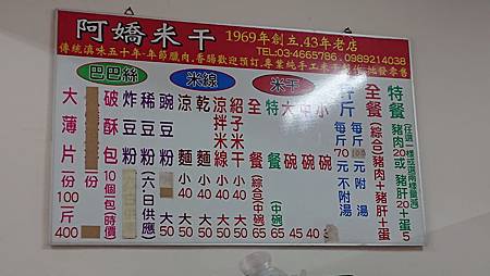 阿嬌米干: 1969年創立(迄今2019年剛好滿50年...店內招牌上寫43年老店,故推論是2012年製作的招牌,那這樣不就這七年來都沒有漲價,太厲害了)