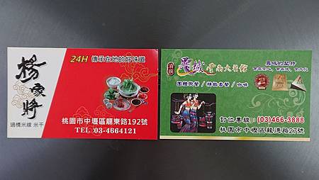 櫃檯上除了擺放"楊家將"的名片,尚有另一張名片"異域雲南大餐館",位於龍德路上,應該是同一個老闆。