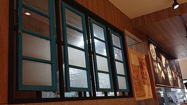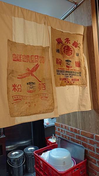 因為當初寫說舊址新開,可以看到廚房入口處掛著"早期的麵粉袋"、並用了木製窗框(加毛玻璃),來呈現"眷村舊式風格"。