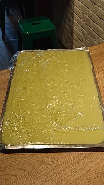 一早來客人還不多,桌上還擺著一整盤的"碗豆粉",擺著放涼之後,會切成一塊一塊,加些清爽的醬料,吃起來蠻滑口的。