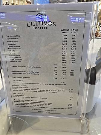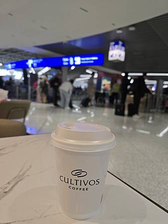 選了入關閘門口之前的一家咖啡店,放鬆心情好整以暇的點了一杯 CULTIVOS 咖啡喝咖啡。